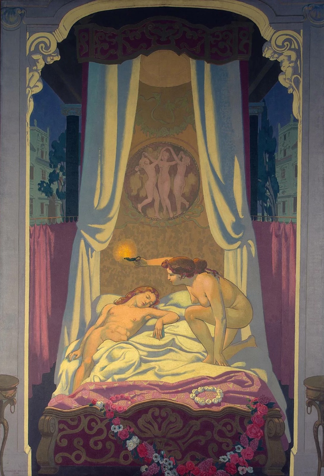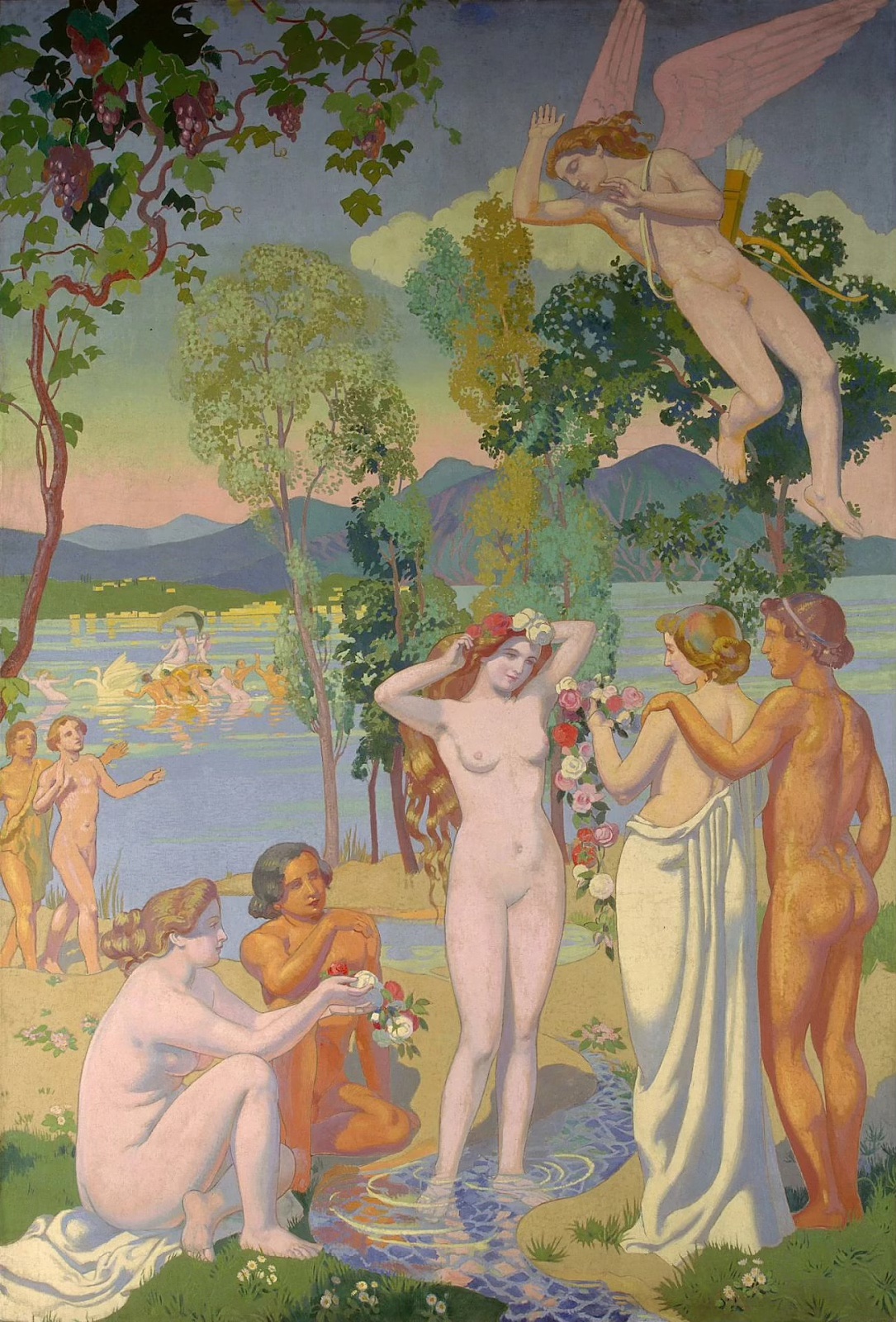 Denis begins to engage with ancient mythology more openly as his work develops. In 1907 the Russian patron Ivan Morozov commissioned him to create a series of panels The Story of Psyche for his private residence. All varying in size, they recount the ancient Roman myth in five episodes, telling the love story of Eros and Psyche, in which Eros represents love and Psyche – the soul.