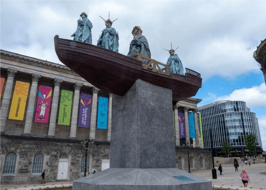 New works are being commissioned to tackle this dichotomy. Contemporary artist Hew Locke took a unique approach to this in his 2022 temporary installation at Victoria Square in Birmingham. Commissioned for the Commonwealth Games, it reimagined an existing sculpture of Queen Victoria by Sir Thomas Brock and William Boyle, by surrounding it with a boat and five